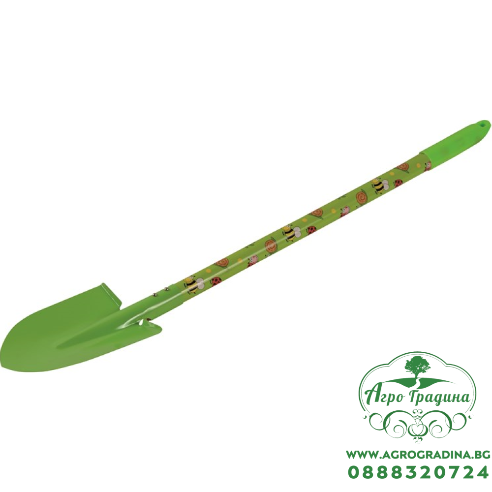 Създадена специално за малките градинари, тя е удобна, лека и цветна, като позволява на децата да участват активно в градинарството и игрите на открито. Работната част е метална и здрава, а дългата дръжка е с PVC покритие, завършена с пластмасов накрайник за по-голям комфорт. Подходяща е както за реална работа в градината, така и за забавни игри, вдъхновяващи децата да следват примера на родителите си.