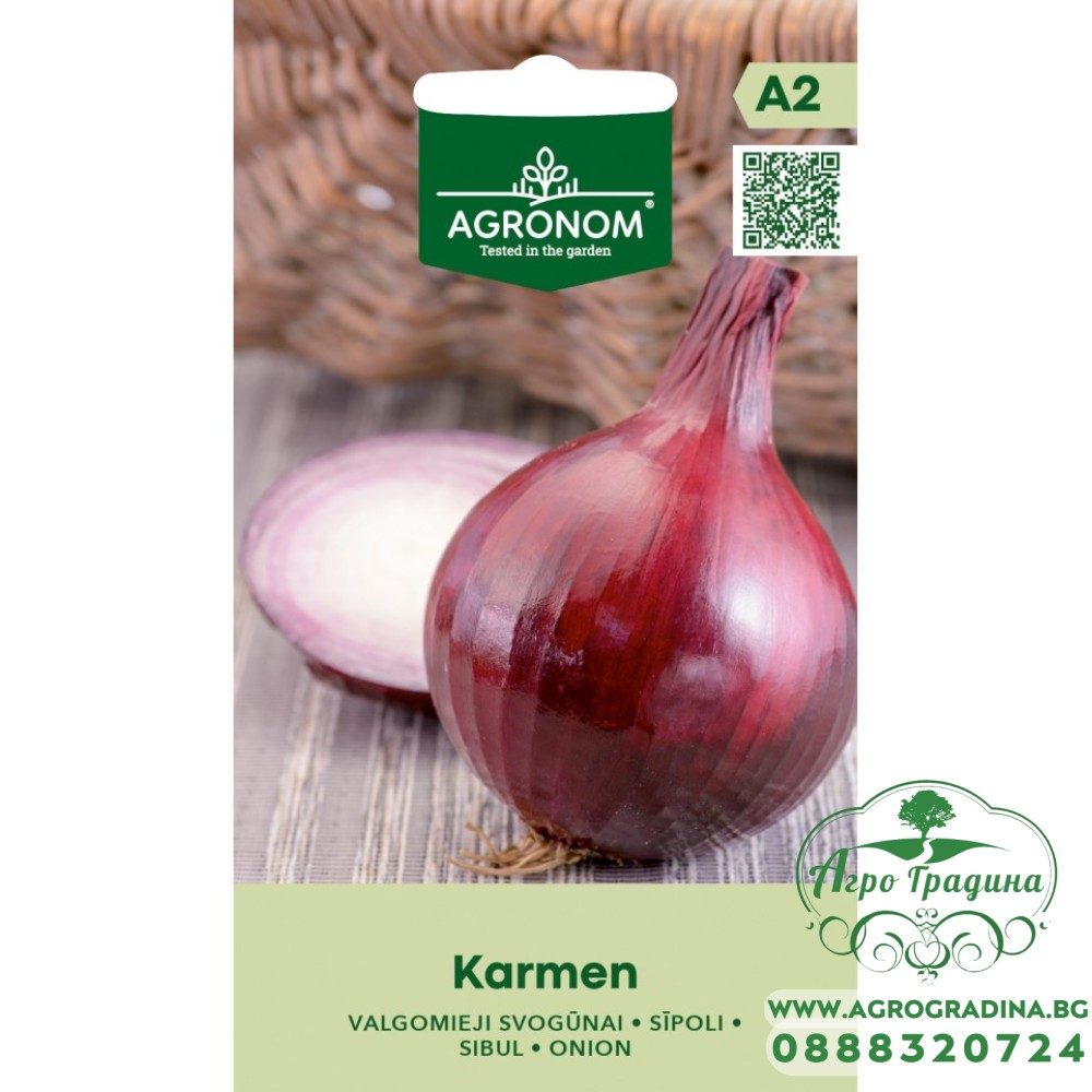 Нашият он-лайн магазин agrogradina.bg представя на вашето внимание семена за лук сорт Кармен. Този сорт лук се използва предимно за салати и е много атрактивен със своя наситено виолетово-червен цвят.