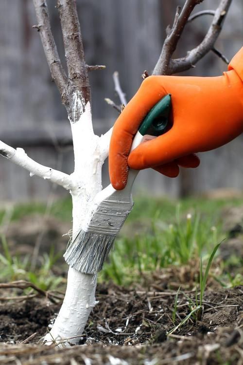 Старата и напукана кора по стъблата и дебелите клони е място, където зимуват яйца, ларви, какавиди и спори на гъбични болести. Затова е важно да почистите кората с помощта на специални четки. След това стъблата и клоните трябва да се варосат с 20% варно мляко, към което може да се добави меден сулфат (син камък) за по-добра защита срещу гъбични инфекции. Или готов вариант на минерална избелваща смес - ефективно средство за предотвратяване на температурни контрасти и гъбични заболявания. -