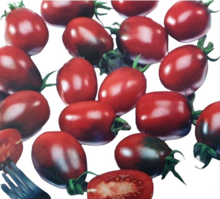 - Домати черни Кримски – средно ранен индетерминантен сорт домати. Плодовете са кръгли едри и с едри размери, екзотично тъмно лилави на цвят и с перфектни вкусови качества. Сочен месест домат с приятен вкус и апетитен аромат.