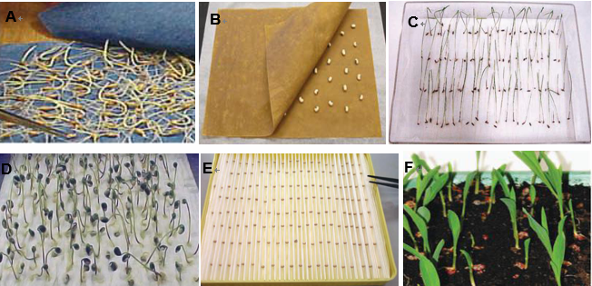 - Нагънати хартии (снимка E): осигуряват по-голяма контактна площ за семената през критичните ранни етапи на поглъщане и покълване.