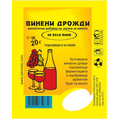 Добавя се доза дрожди по схемата, описана на пакетчето винени дрожди (15-20 гр/100л). Това гарантира бърза и пълна ферментация, както и по-добър вкус и аромат на виното.