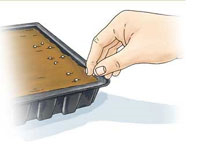 Стъпка 1Засадете семената си!Може да използвате различни методи и материали, като табли за разсад, мини оранжерии, торфени саксии и др. Засаждайте само в субстрат специализиран за тази цел. Степента на покълване обикновено варира от 70 до 99 процента, така че трябва да засадите повече семена, отколкото смятате, че наистина ще ви трябват. Покрийте леко с торфен субстрат и полейте внимателно с пулверизатор.