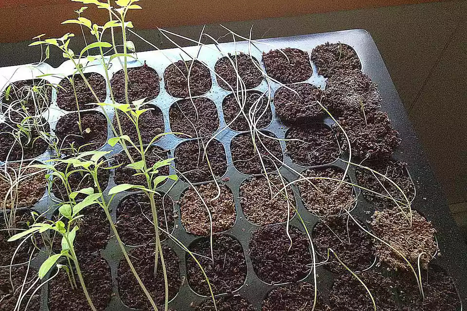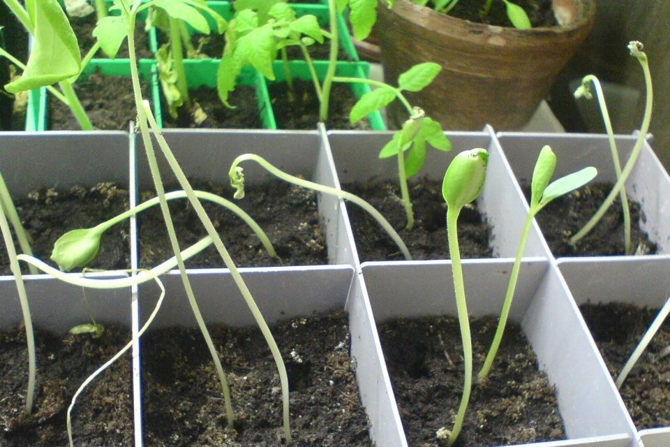 · Високи температури. Топлината също може да доведе до бърз растеж. Това кара стъблата да растат по-бързо от листата. Така разсадът има неуравновесен растеж. Това може да се случи при горещо време или на закрито, ако температурата е твърде висока.