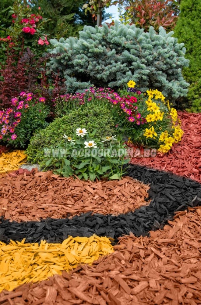 Цветният мулч предлага разнообразие от опции за тези, които искат да избягат от обикновения кафяв мулч. Цветният мулч не само добавя цвят, но и задържа цвета по-дълго. Въпреки че с времето всеки мулч избледнява до сивкав цвят, цветният мулч осигурява по-дълготрайно визуално въздействие. Това е особено важно, защото мулчът не е евтин и искаме той да издържи възможно най-дълго, за да получим най-добрата стойност за парите си.
