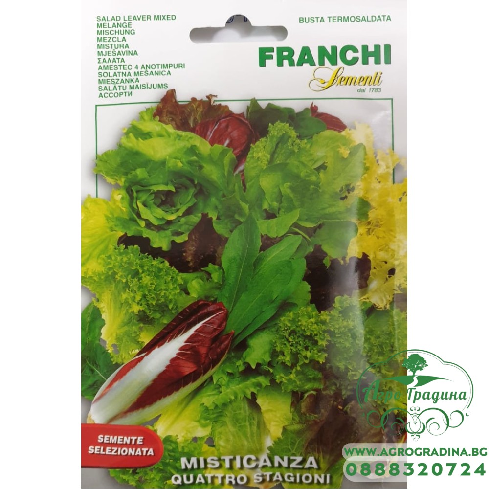 Нашият он-лайн магазин agrogradina.bg представя на вашето внимание семена за микс от Салати четири сезона. Този микс съчетава в себе си най-харесваните и най-вкусните салати, цикоии, ендивия, марули и рукола.