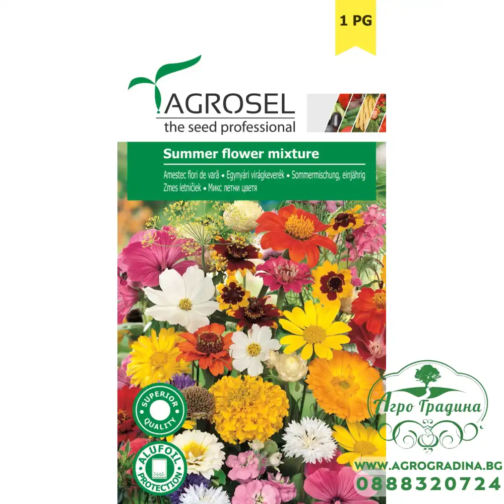 Микс летни цветя / Summer flower mixture Този микс от едногодишни цветя е идеален избор за създаване на ярка и разнообразна градина през лятото. Съставен е от внимателно подбрани видове, които ще ви зарадват с богато ... Прочети повече...