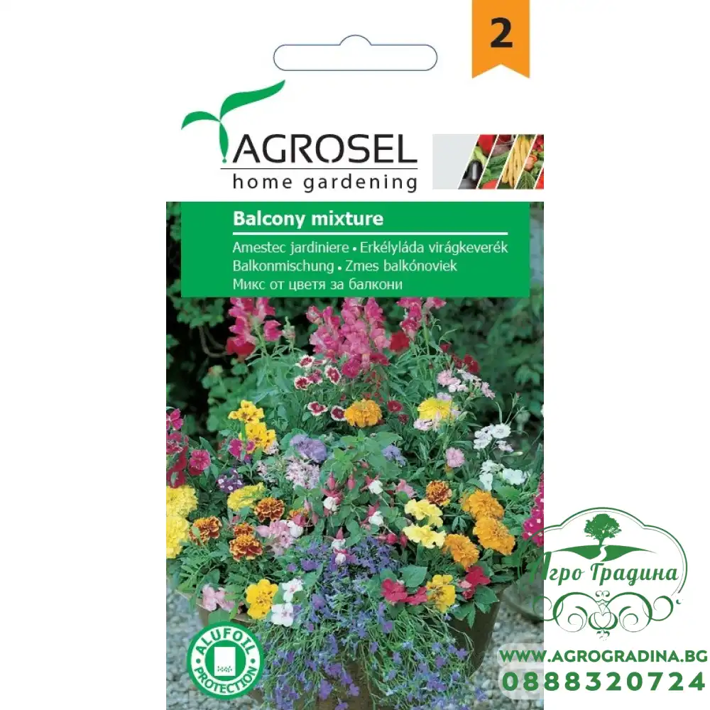 Микс цветя за балкони / Balcony mixture Едногодишни растения. Височина: 25см. Засажда се на слънчеви или полусенчести места. Използват се за саксии или сандъчета. Указания за отглеждане: Семената се засяват на з... Прочети повече...