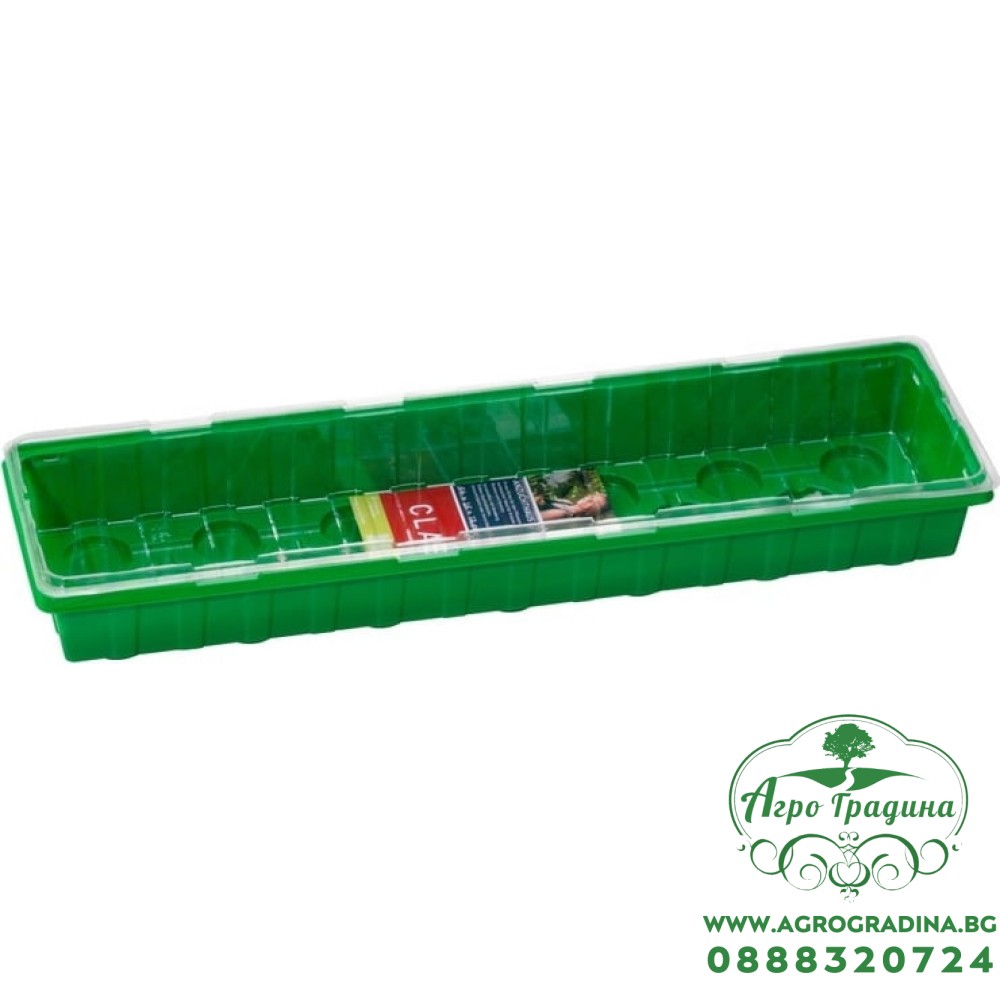 В нашият онлайн магазин Agrogradina.bg може да намерите различни видове работни форми, табли за разсад и мини оранжерии. Тази мини оранжерия е зелена на цвят, има удължена форма и е много подходяща за поставяне на парапет или на по тесни и издължени части. Оранжерията се състои от две части - подложка за събиране на водата и прозрачен капак. Тя е предназначена за многократна употреба и е подходяща за отглеждане на всякакви видове разсад за зеленчуци, плодове и цветя.