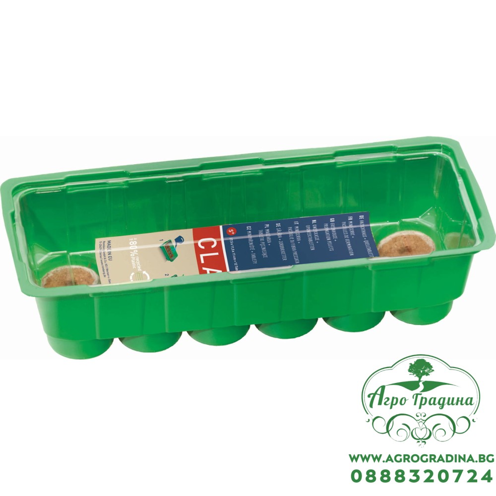 В нашият онлайн магазин Agrogradina.bg може да намерите различни видове работни форми, табли за разсад и мини оранжерии. Тази мини оранжерия е зелена на цвят, има удължена форма и е много подходяща за поставяне на парапет или на по тесни и издължени части. Оранжерията се състои от три части - подложка за събиране на водата, торфени шайби за засаждане и прозрачен капак. Тя е предназначена за многократна употреба и е подходяща за отглеждане на всякакви видове разсад за зеленчуци, плодове и цветя.