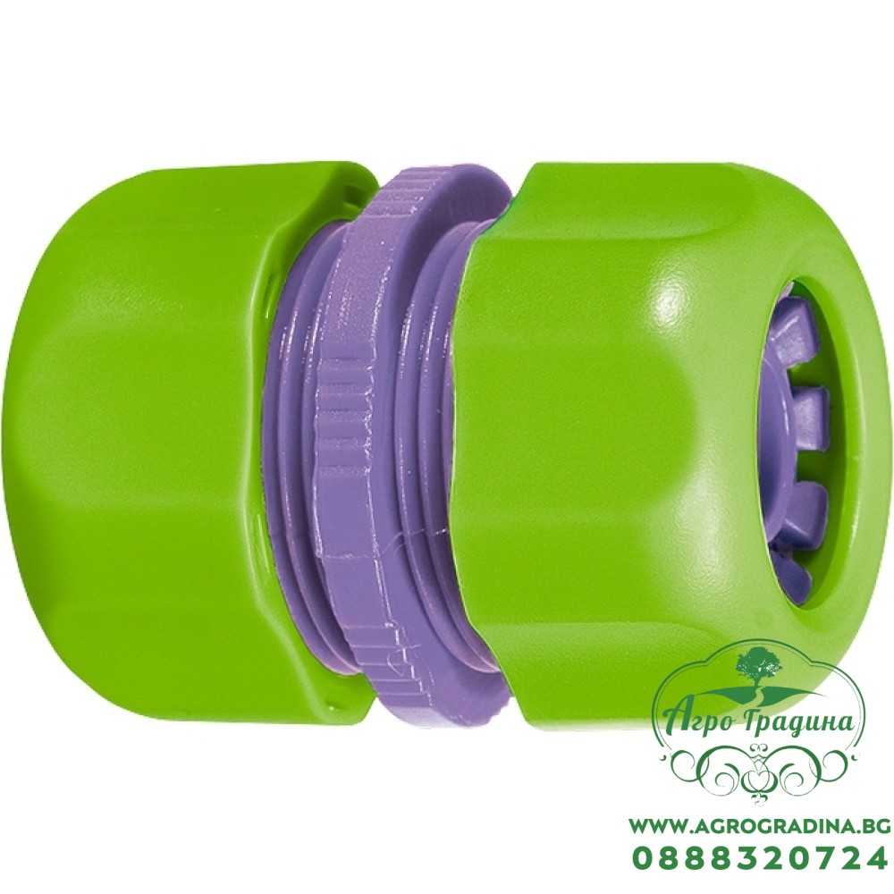 Муфа съединителна ?. Материал: здрава АБС-пластмаса. Слага се върху маркуча. Предназначена е за бързо свързване на два участъка от поливен маркуч с цел ремонт на повреден участък или удължаването.