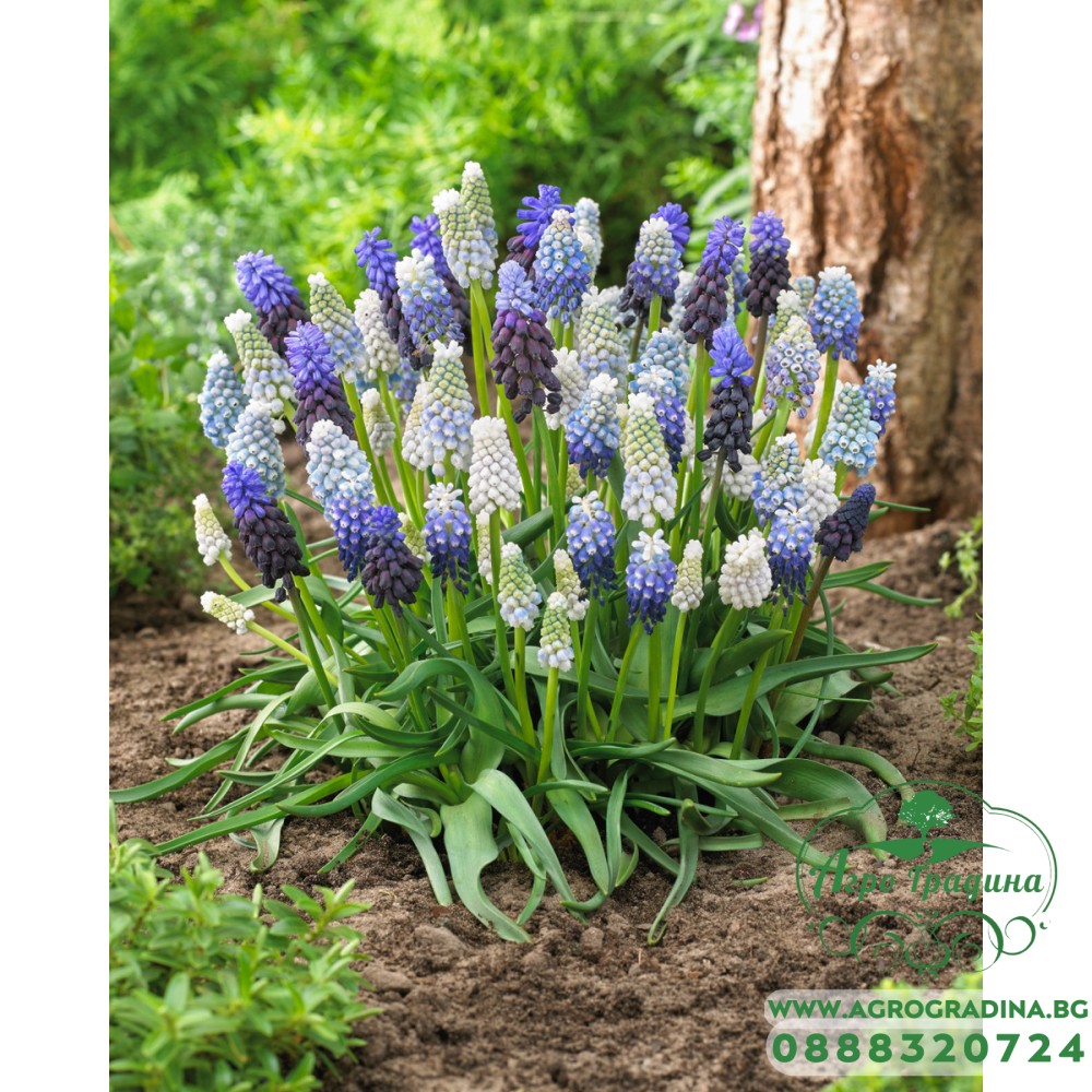 Онлайн магазин agrogradina.bg предлага луковици за микс Muscari Armeniacum (Мускари Армениакум / Гроздовиден зюмбюл, известна и като „Синя перла“).