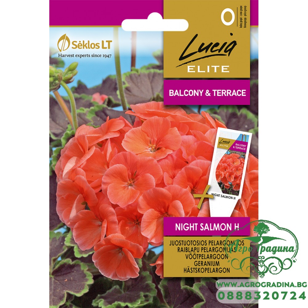 На нашият онлайн магазин ви представяме семена за Мушкато ''Нощна Сьомга'' F1 / Geranium ''Night Solomon'' H - екоративен сорт от рода Geranium (здравец), известен със своите красиви цветове в меко розово-оранжев нюанс, наподобяващ цвят на сьомга.