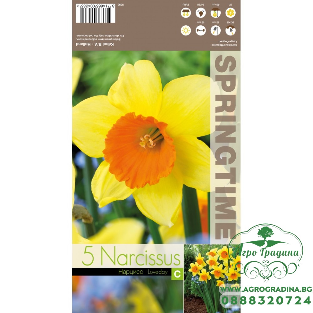 Нарцис Лавдей / Narcissus Loveday - 5 бр луковици Онлайн магазин agrogradina.bg представя луковици за Нарцис Лавдей / Narcissus Loveday - 5 бр луковици.  Нарцис Loveday е изключителен сорт, който впечатлява с ... Прочети повече...