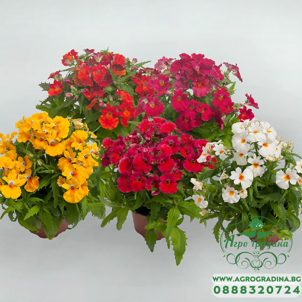 Немезията (Nemesia strumosa) предлага разнообразие от цветове, които ще ви зарадват през целия сезон. Това обилно цъфтящо едногодишно растение ще внесе уют и красота във вашата градина или на вашата тераса. С компактните си размери, немезията е идеална за отглеждане в малки контейнери, балконски саксии и сандъчета.