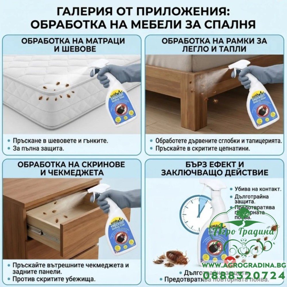 Етикети: Нокаут, Креватни, Дървеници, Knockout, Bedbug, Killer, инсектицид, 750мл, BugAway,