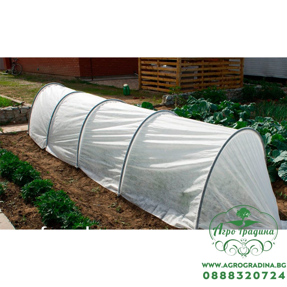 Парникът разполага със здрава конструкция от дъги с диаметър ∅ 1 см, което го прави устойчив и стабилен. Покривалото е изработено от висококачествен нетъкан текстил, който позволява на растенията да дишат, като същевременно ги предпазва от външните влияния.