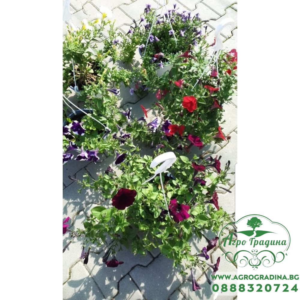 Етикети: Разсад, каскадна, петуния, различни, цветове, висяща, кука,