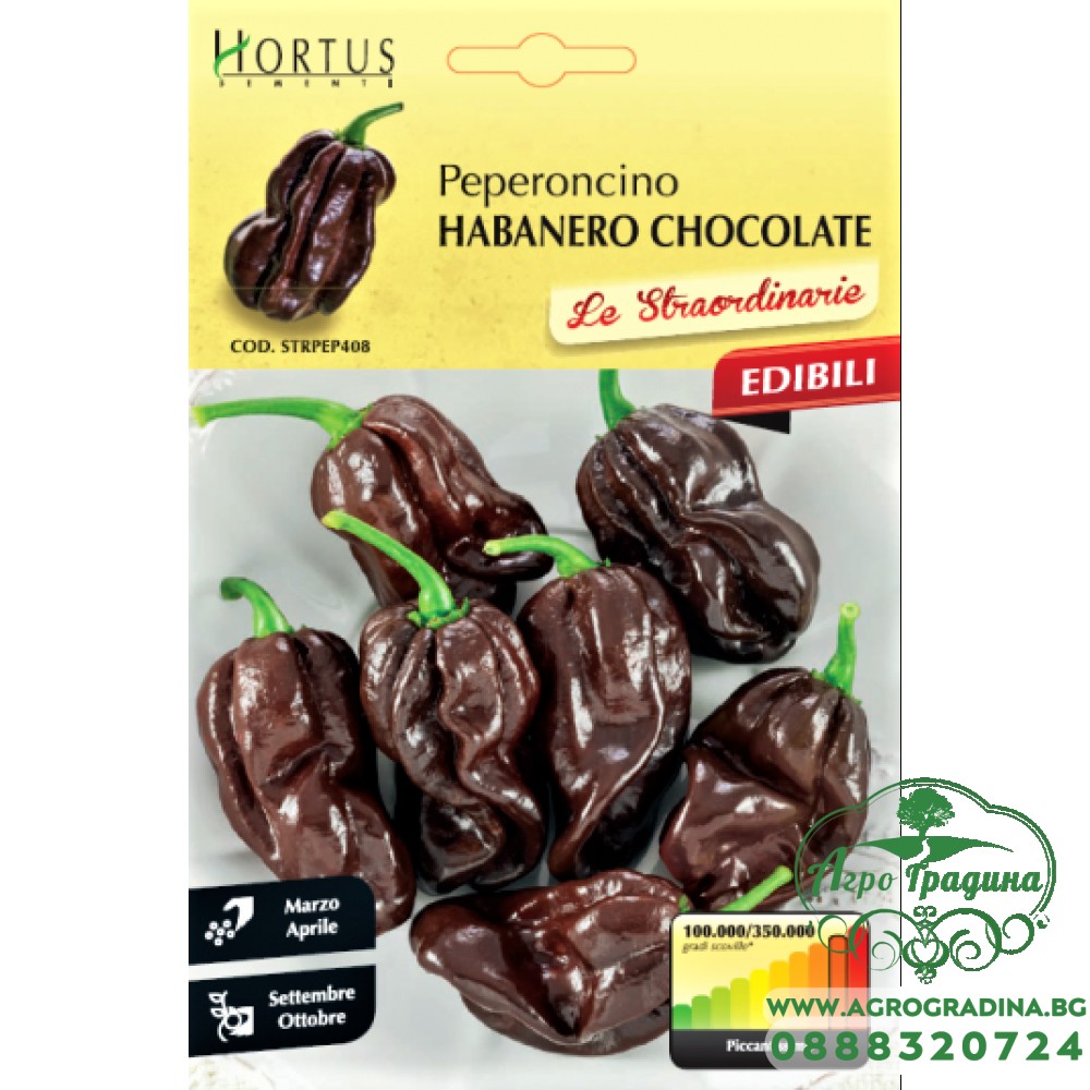 Нашият онлайн магазин agrogradina.bg представя на вашето внимание семена за Пипер Хабанеро Шоколад/ Peperoncino Habanero Chocolate - чушките имат опушен, леко сладък вкус, с нотки на какао.