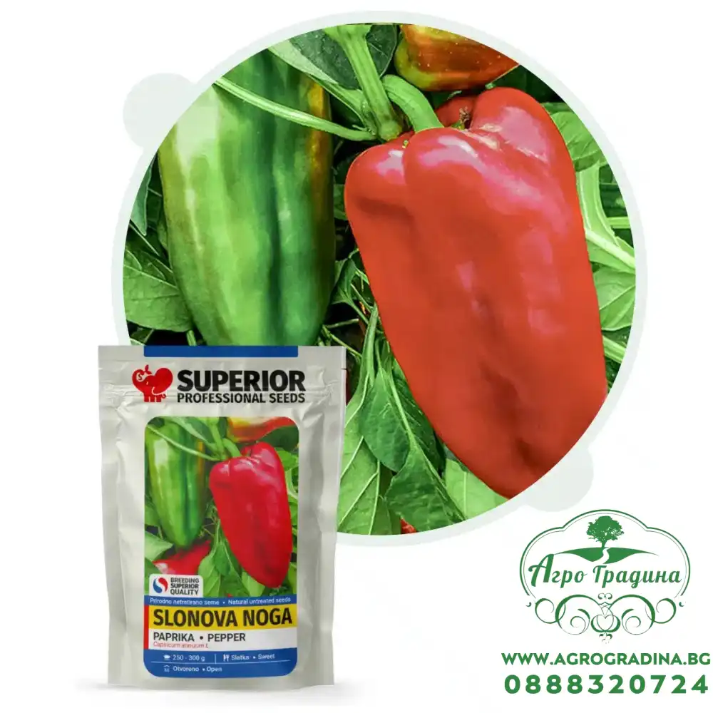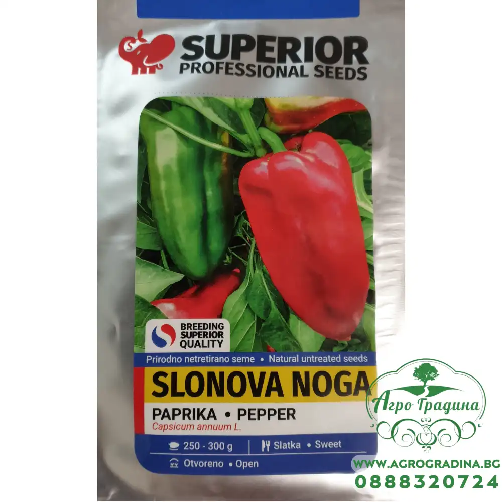 Нашият он-лайн магазин agrogradina.bgпредставя на вашето внимание семена за пипер сорт Слонова Нога. Този висококачествен сръбски сорт пиперформира изключително големи и вкусни плодове.
