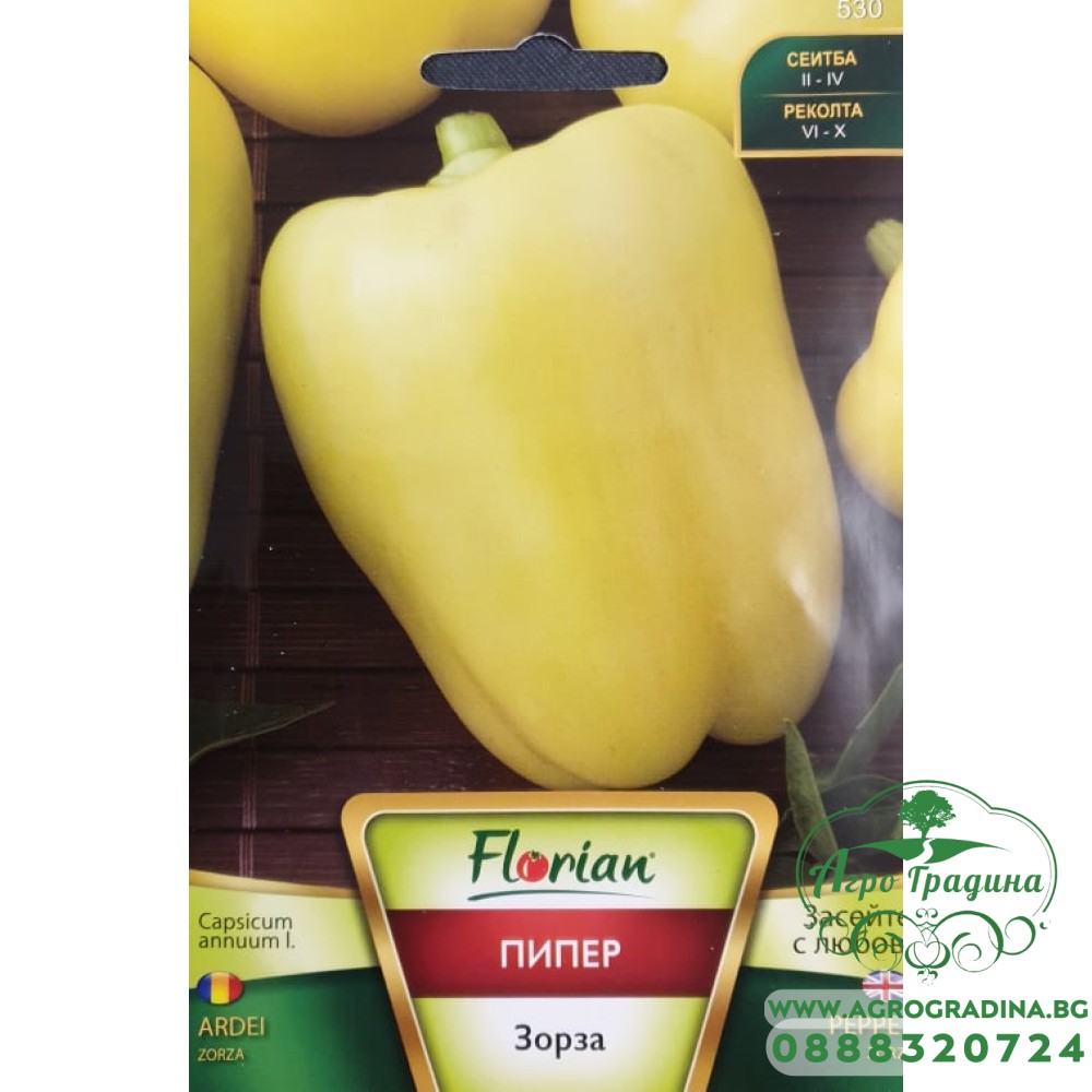 Пипер Зорза (бледо-жълти) - НОВ СОРТ Нашият он-лайн магазин agrogradina.bg представя на вашето внимание семена за пипер сорт Зорза . Този НОВ СОРТ пипер е с уникален вкус и атрактивен бледо-жълт цвят. Сладък средн... Прочети повече...