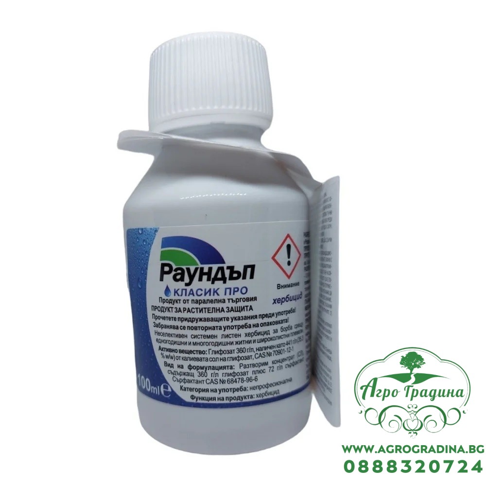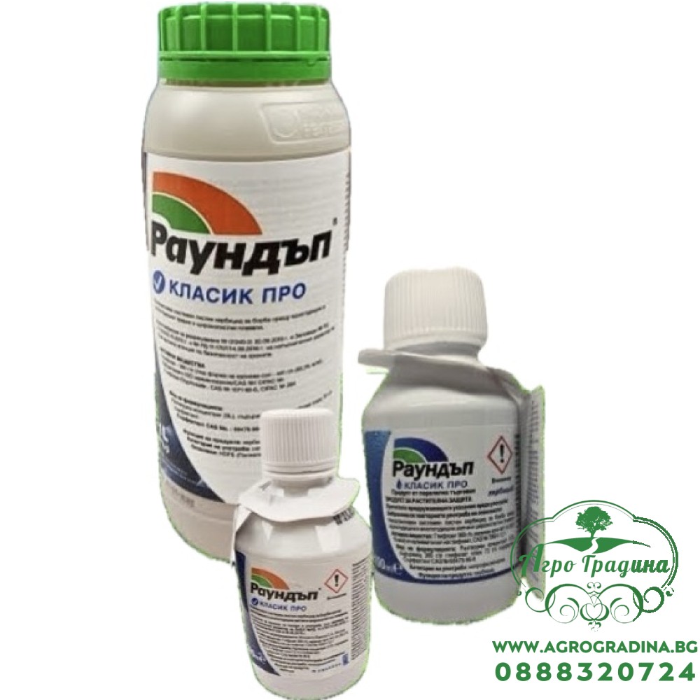 Раундъп Класик Про е неселективен, системен хербицид с глифозат, предназначен за ефективен контрол на едногодишни и многогодишни житни и широколистни плевели. Абсорбира се чрез листата и достига до корените и подземните органи, гарантирайки цялостно унищожение на плевелите.