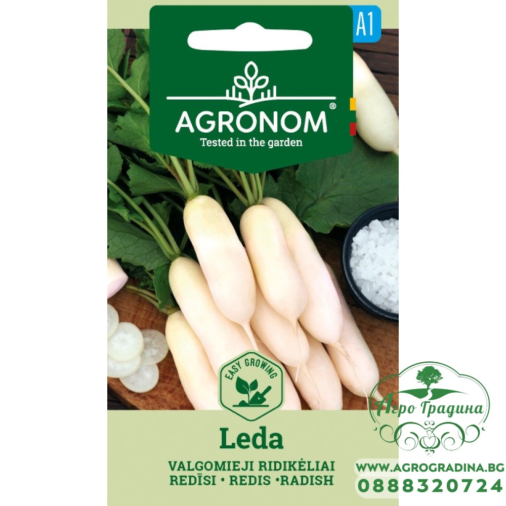 Репички Леда / Leda Онлайн магазин agrogradina.bg представя семена за бели репички Леда / Leda. Ранен високодобивен сорт. Расте в рамките на 28–34 дни след засяването. Репичките са с цилиндрична форма и дълго врем... Прочети повече...