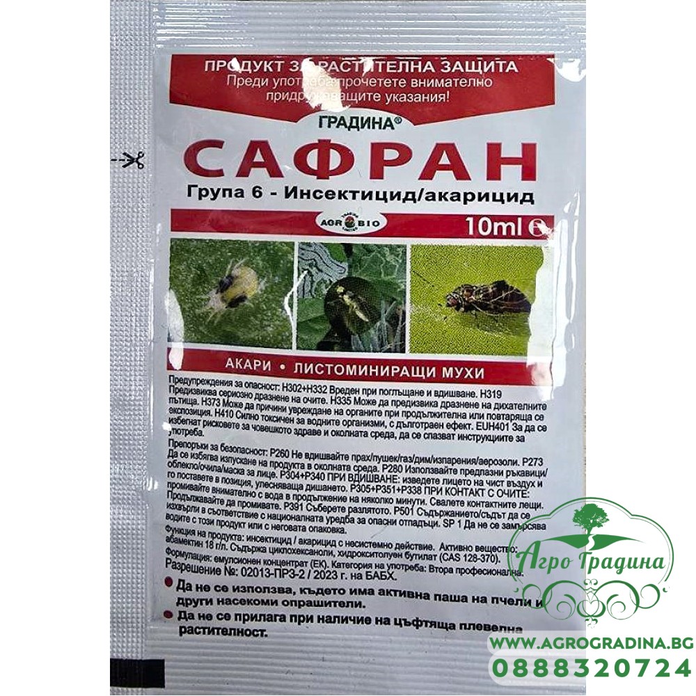Сафран – естествен инсектицид и акарицид с мощно действие Онлайн магазин agrogradina.bg предлага Сафран - срещу акари и миниращи мухи - отличен избор за всеки, който търси естествена, но мощна защита срещу акари и ли... Прочети повече...