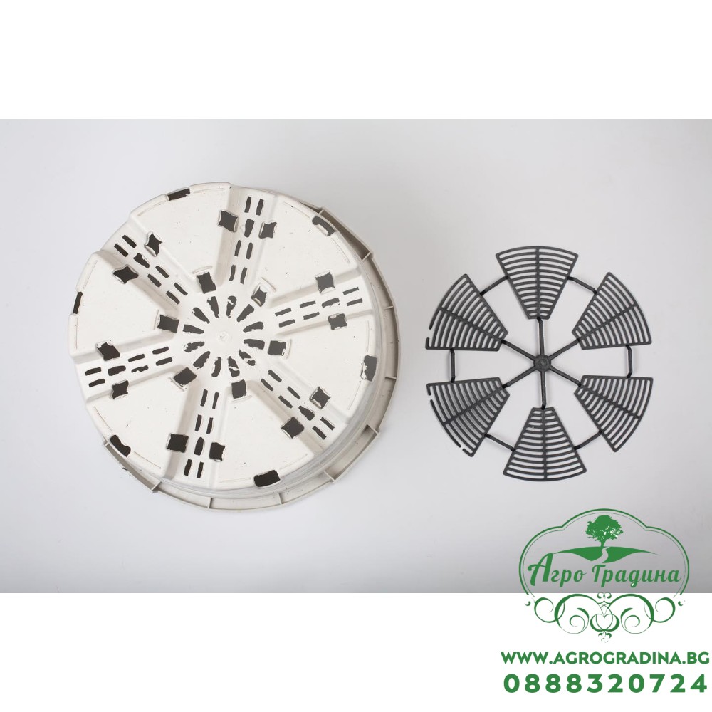 Тази саксия за отглеждане на боровинки предлага надежност и качество. Тя е изработена от материал с висок процент "UV" добавки за здравина и устойчивост. Притежава повдигнато на 4 см дъно покрито с 80 дупки за перфектно дренажиране. В комплект със саксията получавате и отводнителна мрежа за още по-добър контрол на влагата.