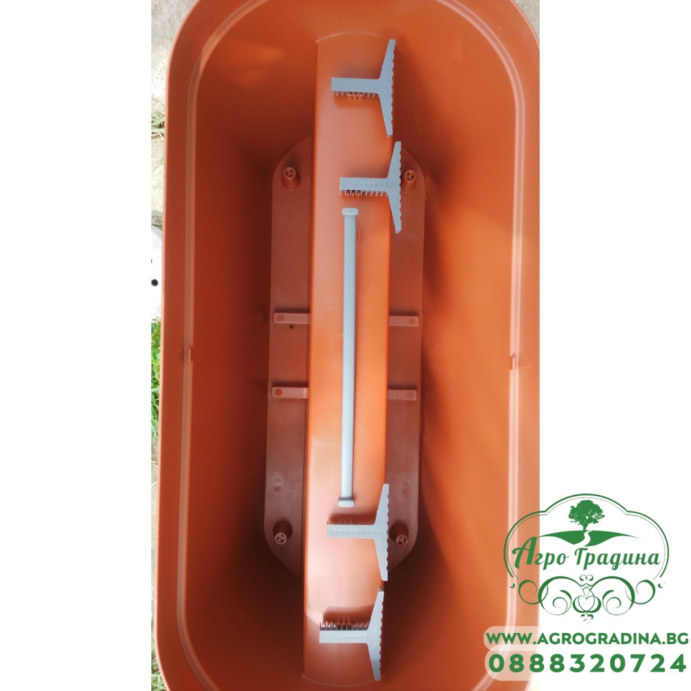 Сандъче за директен монтаж на парапет за балкон и тераса. За всички вас който нямате достатъчно място или искате нещо уникално. Тайната на спестяването на пространството се крие в това, че саксията за цветя има две отделения, между които има свободно място. Това свободно място е предназначено за по-лесно закачване на парапета на балкона.