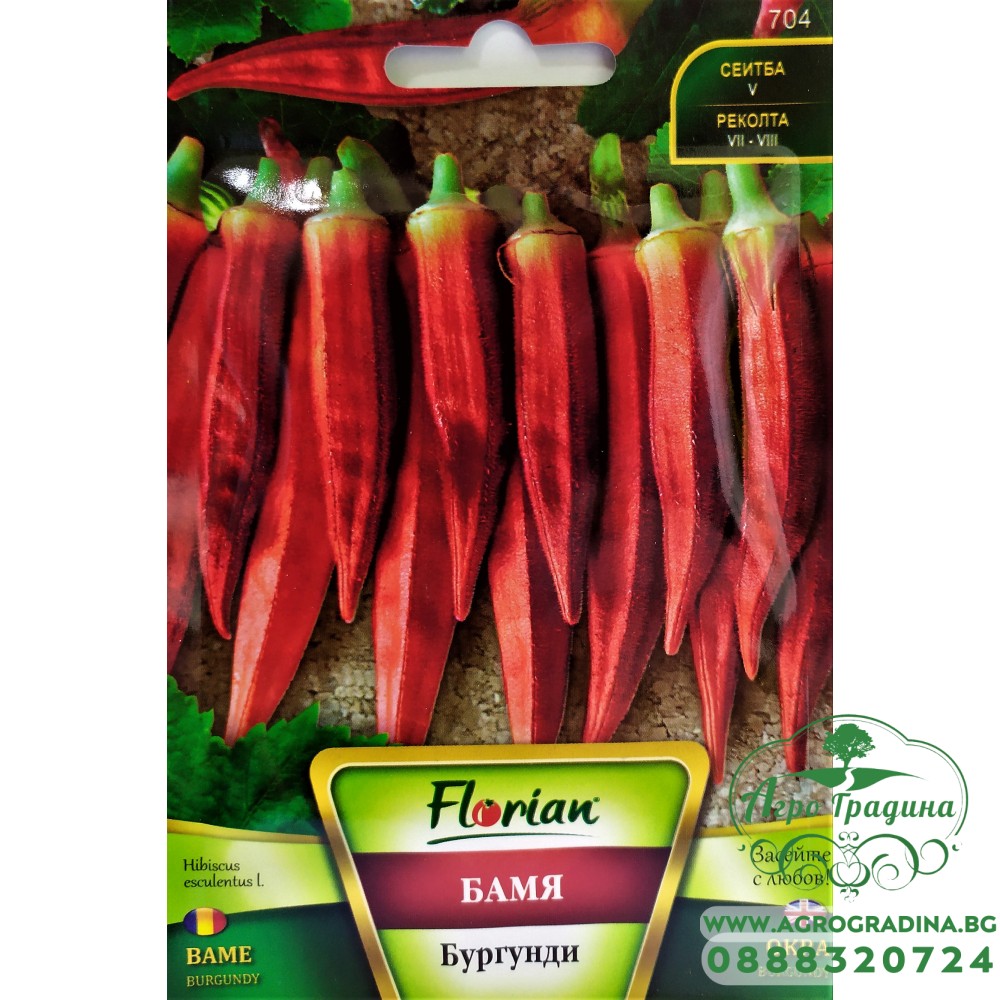 Нашият он-лайн магазин agrogradina.bg представя на вашето внимание семена за Бамя сорт Бургунди. Характерно за сорта е че запазва деликатността си по-дълго в сравнение с други сортове.