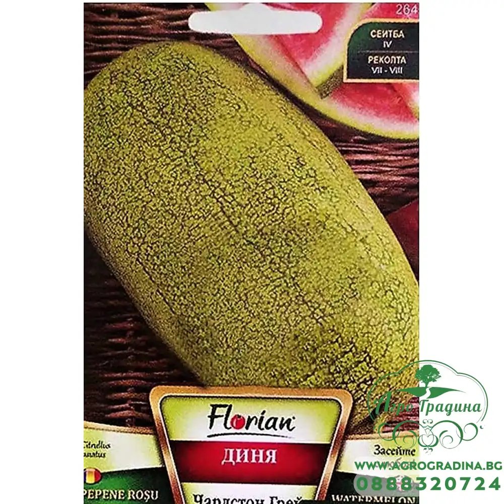 Нашият он-лайн магазин agrogradina.bg представя на вашето внимание семена за Диня Чарлстон Грей. Отличава се с светлозелена и прошарена кора и яркочервена и сладка сърцевина.