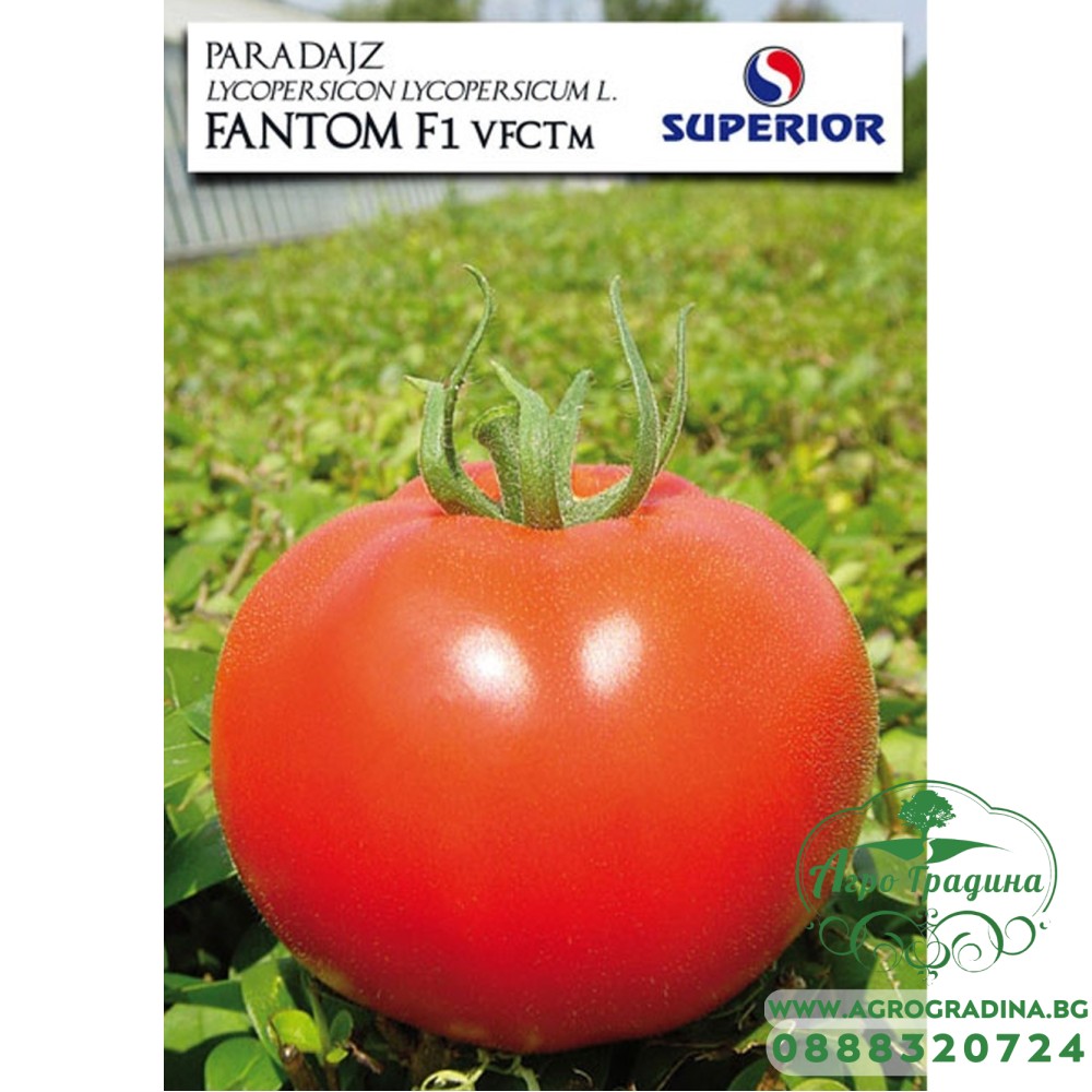 Фантом F1 е високодобивен, индетерминантен, средно ранен сорт домати. Те са хибриден сорт с много буен растеж, устойчив на много болести. Доматите са гладки, месести, добре оцветени, добри за транспорт и дълго съхранение. Много родлив. Средното тегло на плода е 200 гр. За отглеждане в оранжерия и на открито.