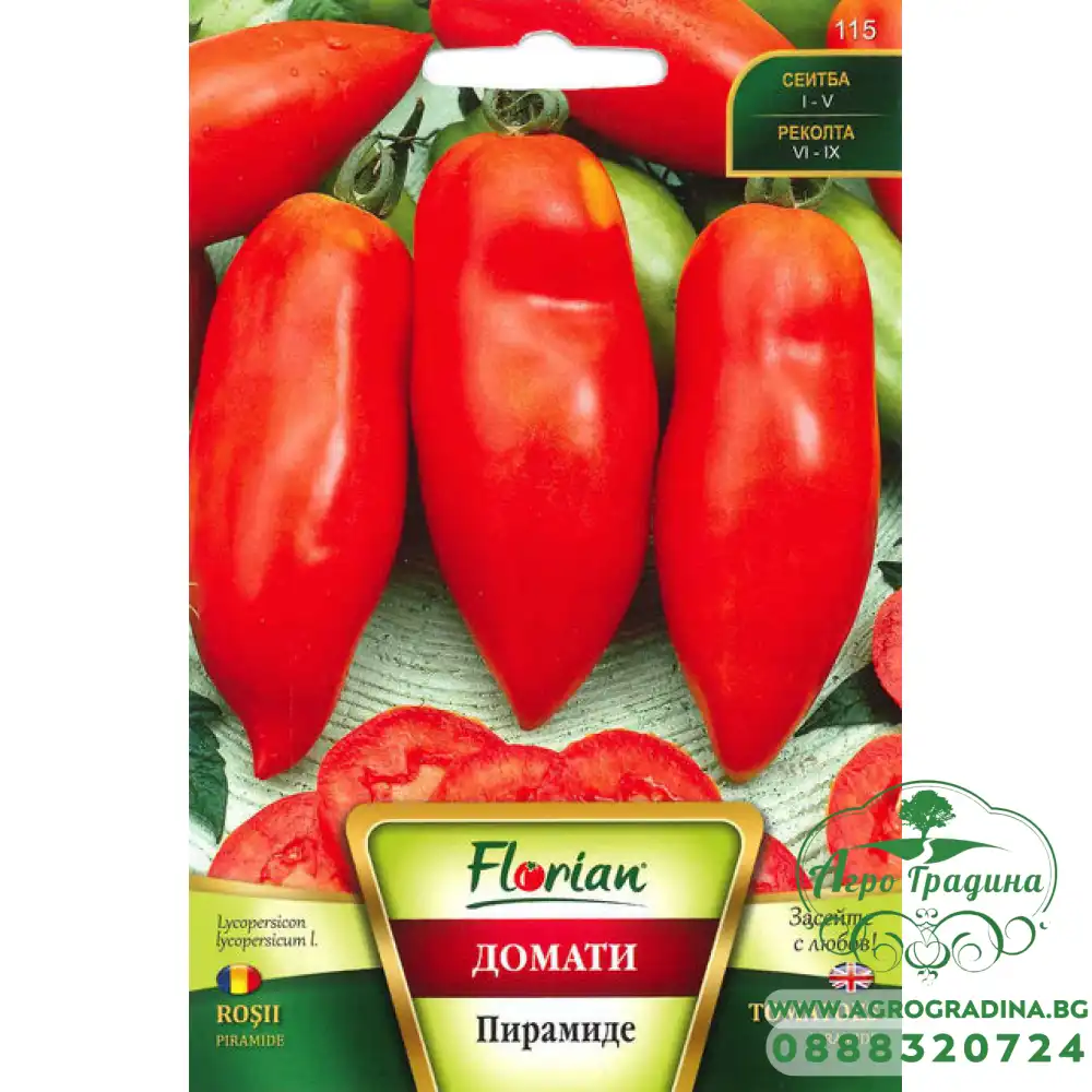 Нашият он-лайн магазин agrogradina.bg представя на вашето внимание семена за домати сорт Пирамиде тип чушка. Плодовете са месести, ярко червени и едри.