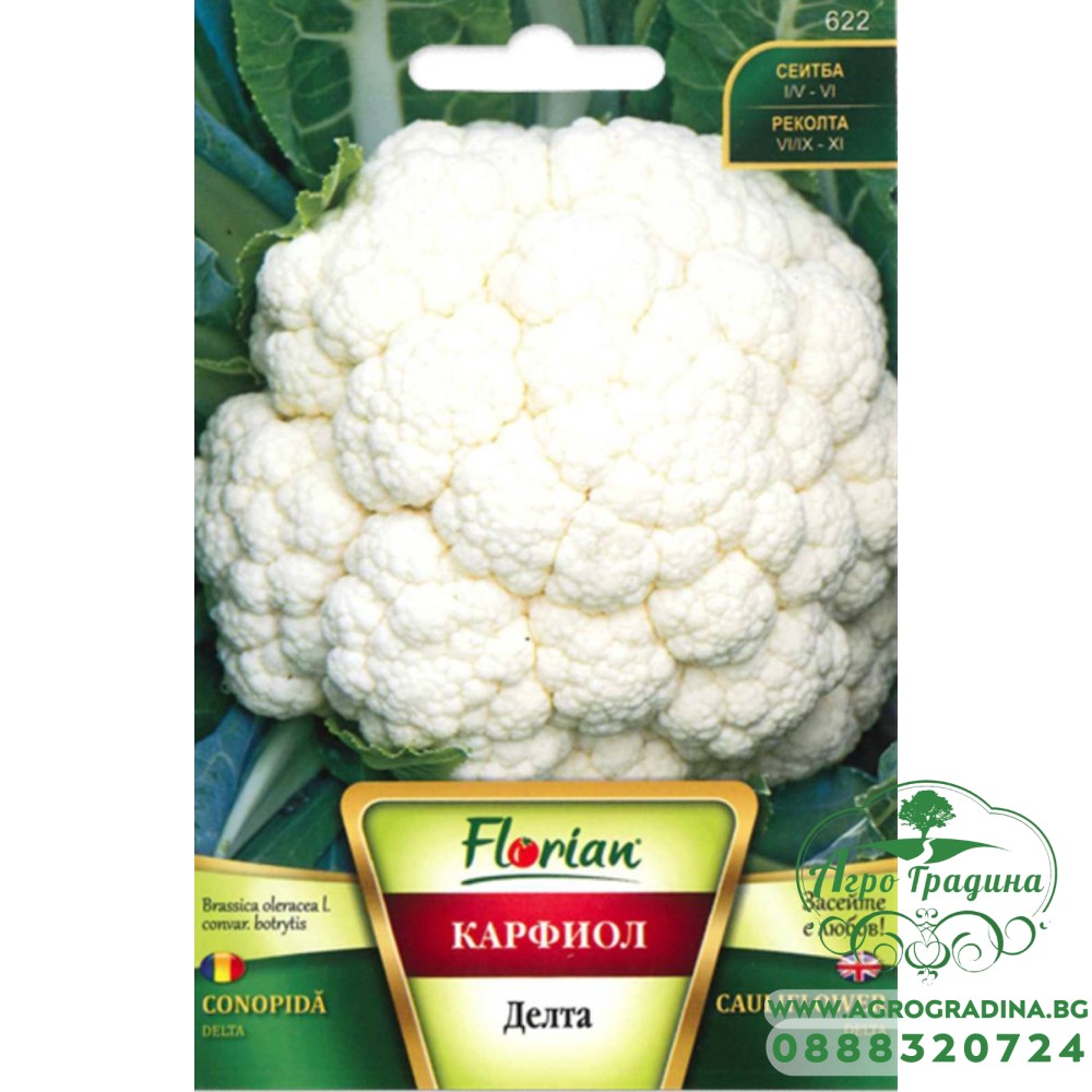 Нашият он-лайн магазин agrogradina.bg представя на вашето внимание семена за карфиол сорт Делта. Този сорт карфиол се отличава с големите си, снежно бели и много вкусни плодове.