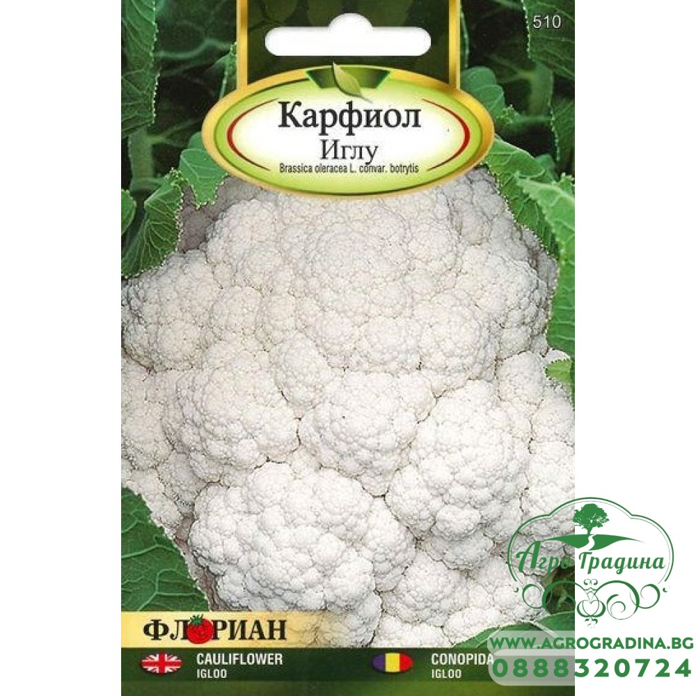 Нашият он-лайн магазин agrogradina.bg представя на вашето внимание семена за карфиол сорт Иглу. Този сорт карфиол се отличава с това че може да се отглежда както за едри глави, така и за бейби карфиол (като се сгъсти засаждането).