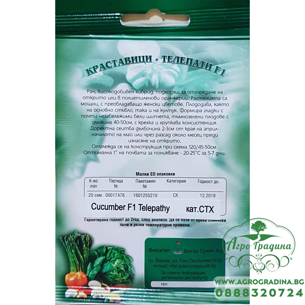 Нашият он-лайн магазин agrogradina.bg представя на вашето внимание семена за краставици сорт Телепати F1 - високодобивност, съчетана с дълги и много вкусни плодове.