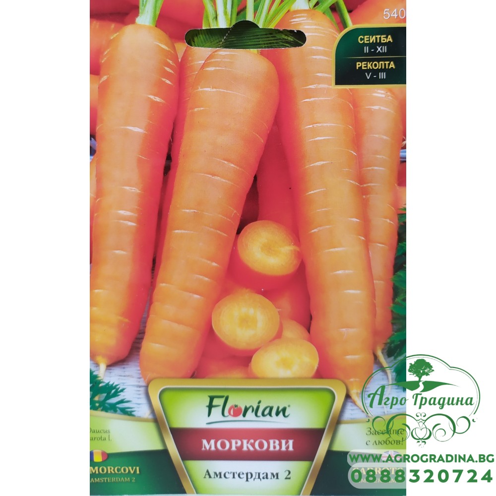 Нашият он-лайн магазин agrogradina.bg представя на вашето внимание семена за моркови сорт Амстердам 2. Този сорт моркови се отличава с изключително сладки и вуксни кореноплоди.