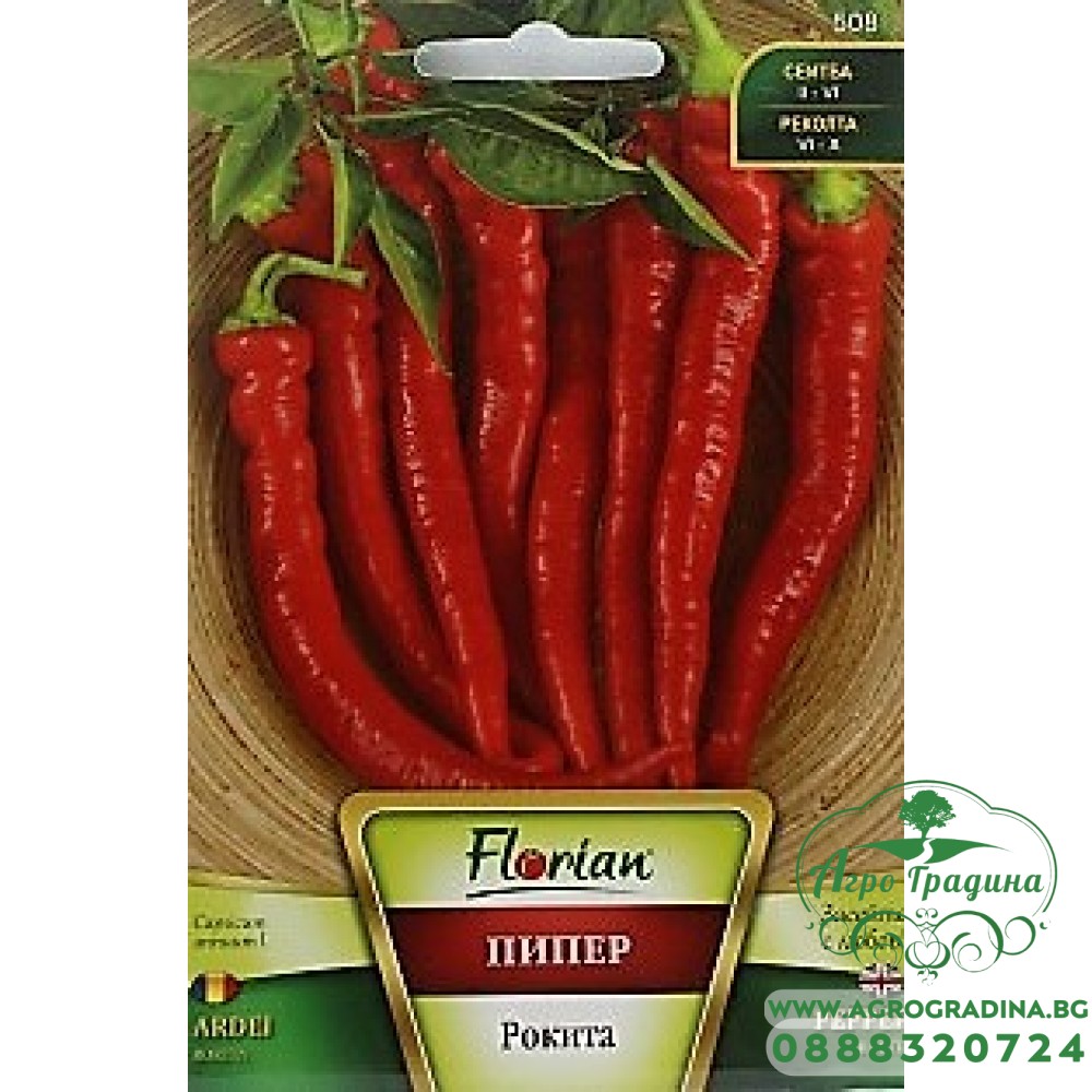 Нашият он-лайн магазин agrogradina.bg представя на вашето внимание семена за пипер сортРокита. Този сорт пипер е със умерено лютиви, издължени и наситено червени плодове.