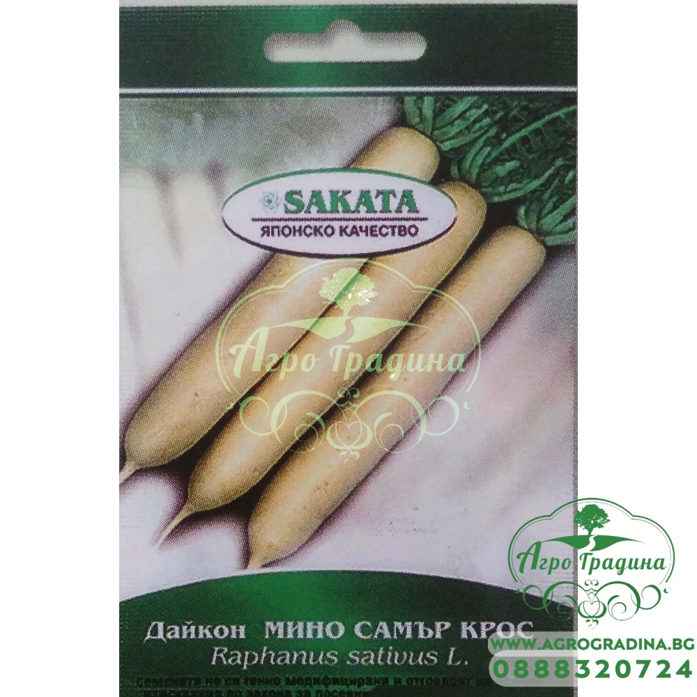 Ряпата дайкон вече трайно се е настанила до нашенската - обикновена бяла, черна, червена ряпа. В родината й Япония вярват, че дълголетието на японците се дължи отчасти на консумацията й. В това вярване вероятно се крие и истина, защото кореноплодният зеленчук съдържа големи количества желязо и магнезии, витамин А, Е, D и от B групата. Има значително по фин и нелютив вкус от познатите ни събратя. Бърз темп на растеж и съзряване 45- 55 дни след сеитбата. Формира гладки без власинки, атрактивни кореноплоди с дължина 40 см. и диаметър 6,5 см. Притежава фина, крехка и сочна консистенция почти без лютивина. Вкусен за салата, консервиране и готвене. Устойчив на гъбни и вирусни болести.Сеитба на дълбочина 2-3 см. в края на юни до средата на август на леки и продълбочени почви.