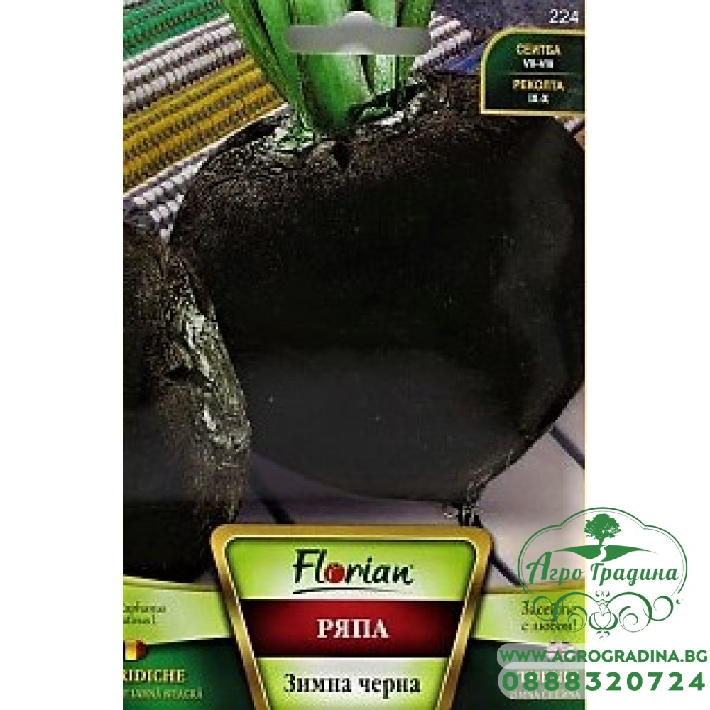 Ряпа зимна черна Нашият он-лайн магазин agrogradina.bg представя на вашето внимание семена за черна ряпа. Този сорт ряпа е високодобивна с отлични вкусови качества и добра съхраняемост. Високодобивен сорт ряпа, обр... Прочети повече...