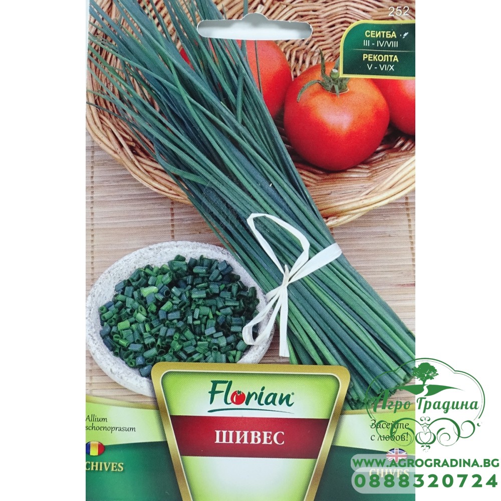 Шивес принадлежи към сем. Лукови. Той е многогодишен сорт, подходящ за целогодишно отглеждане. Непретенциозен е към почвата, обича слънце и влага. Засявайте на закрито месец март, на открито през април. Разсажда се на разстояние 10см между растенията. Подходящ и за саксийно отглеждане. Режете първоначално външните листа на разстояние 5см от почвата.Образува красиви светлолилави цветове, които е добре да премахвате, за да стимулирате образуването на листна маса.Подходящ е за прясна консумация, при приготвяне на салати, сосове,супи, ястия с картофи, ориз, риба и всякакво месо. Вкусът наподобява този на чесъна, но е с много по-фин аромат и вкус. Богат е на вит. В и С, калций, фосфор и желязо.