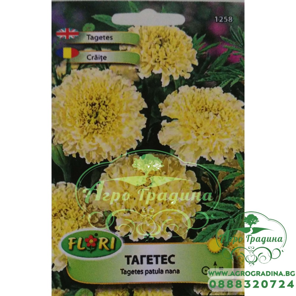 На нашият он-лайн магазин ви представяме семена за цветя тагетес бял. Този сорт цветя са едногодишни и виреят добре на слънчеви места.