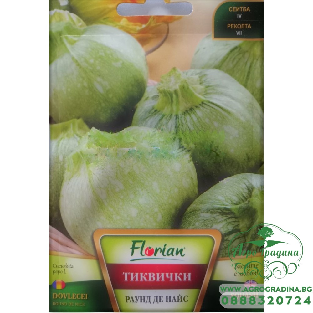 На нашия онлайн магазин ви представяме тиквички раунд де найс. Този сорт тиквички са с кръгла форма и бледозелен цвят.