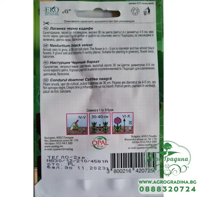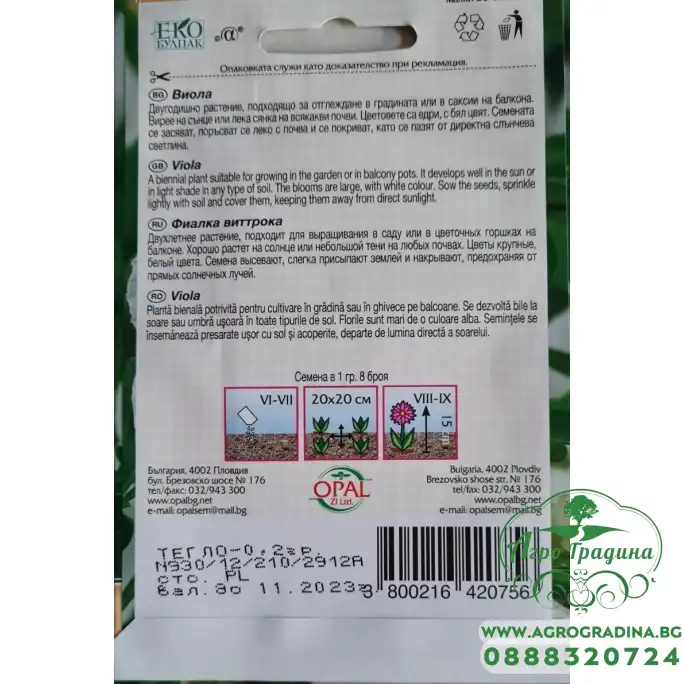 В нашият онлайн магазин www.agrogradina.bg може да намерите широка гама семена от различни видове цветя. Нашите семена са с гарантиран произход и качество, опаковани в трислойно алуминиево фолио с цел запазването на посевните качества. Изберете семена за вашата цветна градина. Тук ще откриете семена от различни видове градински цветя, интериорни растения, цъфтящи и листнодекоративни цветя, семена от екзотични видове, за засяване в саксии или в двора. Като най – големият професионален онлайн магазин за градината ще Ви представи професионални семена на цветя от български производители и сертифицирани висококачествени семена внос от Холандия, Германия, Италия, Полша и мн. др. Изберетей от многобройните предложения като астри,теменужка,виола,далия,декоративни тиквички,Делфиниум (Ралица),Ешолция (Калифорнийски Мак),Иберис,Импатиенс (циганче), Ипомея,калдъръмче,карамфил,Кобея,Космос,Кученце,Латинка,Петуния,Салвия,Тагетес,карамфил,хелиантус,хризантема,цения и много други.