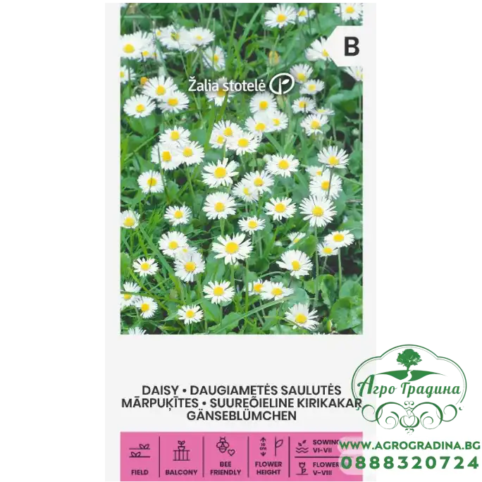 В нашият онлайн магазин www.agrogradina.bg може да намерите широка гама семена от различни видове цветя. Нашите семена са с гарантиран произход и качество, опаковани в трислойно алуминиево фолио с цел запазването на посевните качества. Изберете семена за вашата цветна градина. Тук ще откриете семена от различни видове градински цветя, интериорни растения, цъфтящи и листнодекоративни цветя, семена от екзотични видове, за засяване в саксии или в двора. Като най – големият професионален онлайн магазин за градината ще Ви представи професионални семена на цветя от български производители и сертифицирани висококачествени семена внос от Холандия, Германия, Италия, Полша и мн. др. Изберетей от многобройните предложения като астри,теменужка,виола,далия,декоративни тиквички,Делфиниум (Ралица),Ешолция (Калифорнийски Мак),Иберис,Импатиенс (циганче), Ипомея,калдъръмче,карамфил,Кобея,Космос,Кученце,Латинка,Петуния,Салвия,Тагетес,карамфил,хелиантус,хризантема,цения и много други.