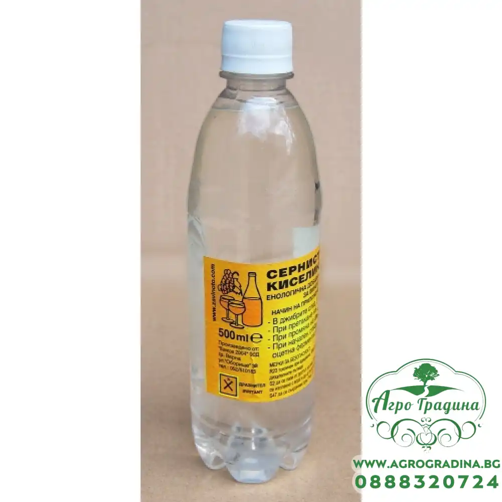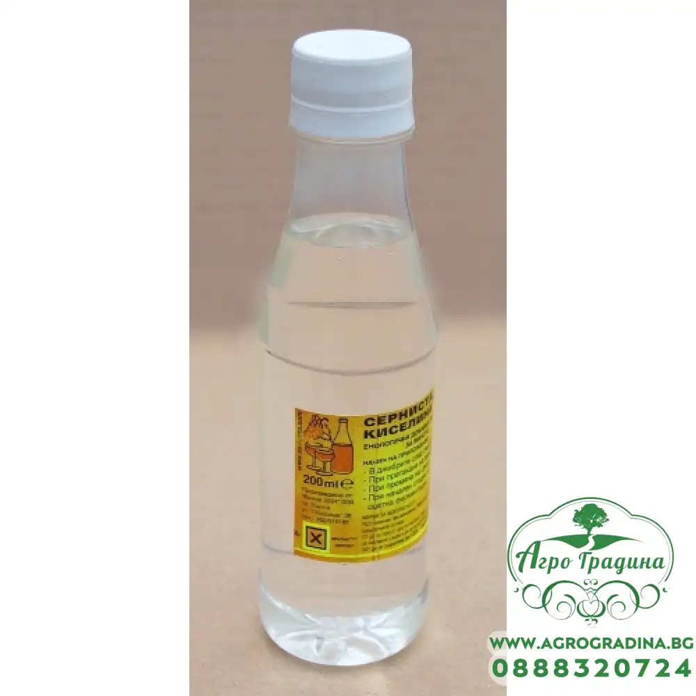 Серниста киселина Предназначение За стабилизиране и удължаване „живота“на виното. Дозировка В джибрите след смилане - 1 грам/литър При претакане на виното - 1 грам/литър При промяна на цвета - 1-1.5 грама/л... Прочети повече...