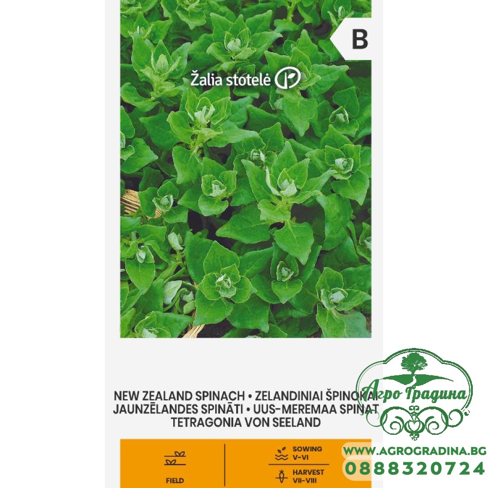 Спанакът Нова Зеландия има вегетационен период - 50-70 дни. Листата са месести, дебели, имат вкус на спанак, но външно изглеждат по-малки от спанака, натрупват много витамин С и каротин. За храна се използват млади листа и дръжки. Топлолюбив сорт, отглежда се през лятото. Най-подходяща е за средно глинеста и умерено плодородна почва.