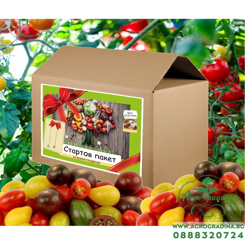 Нашият стартов пакет е идеалното решение за всеки, който иска да зарадват себе си или приятел, любител на екзотичните чери домати. Всичко, от което се нуждаете, за да започнете успешно да отглеждате чери домати се намира в този пакет. С него ще успеете да направите разсад и след това да засадите в саксия или на двора и да се радвате и похапвате от плодовете цяло лято.