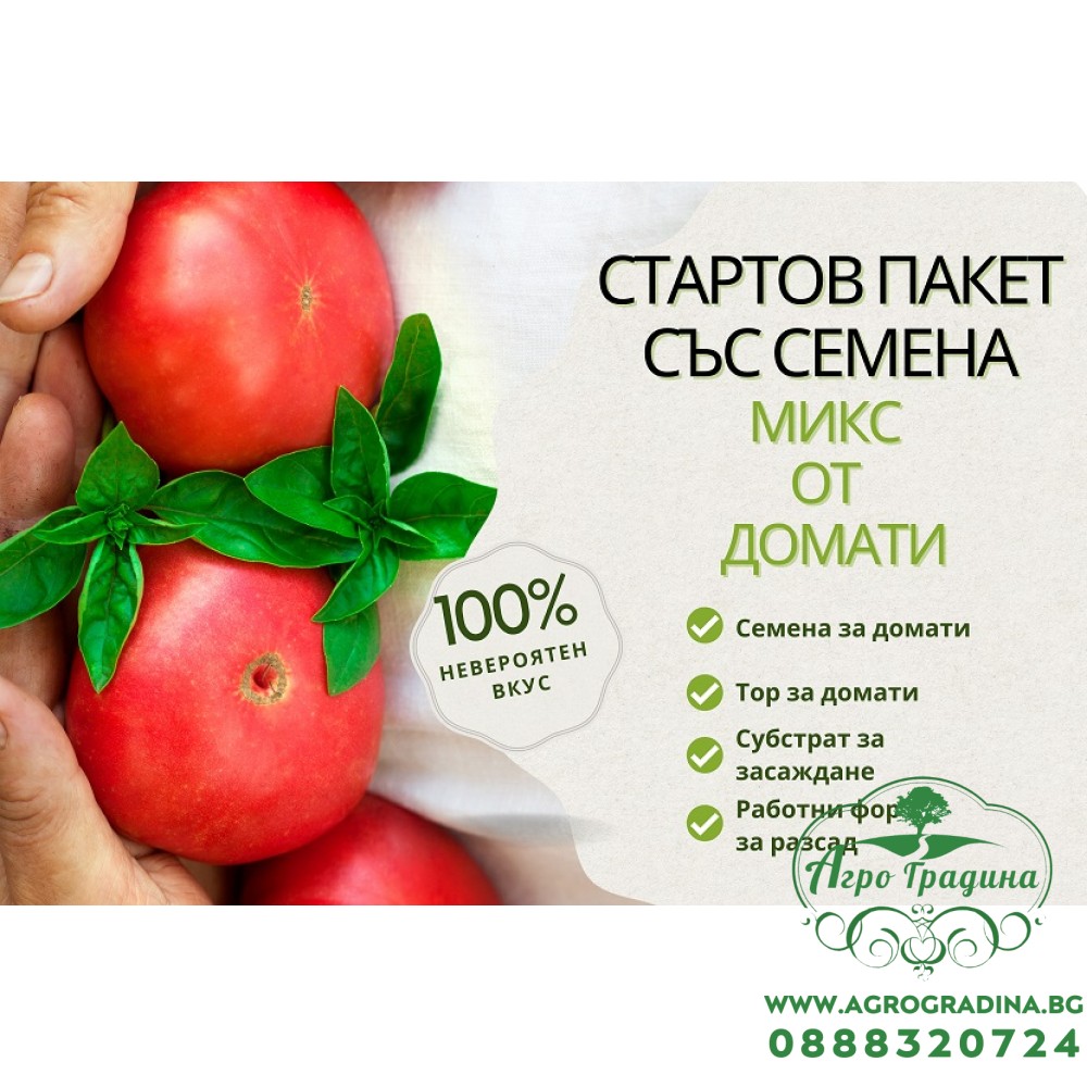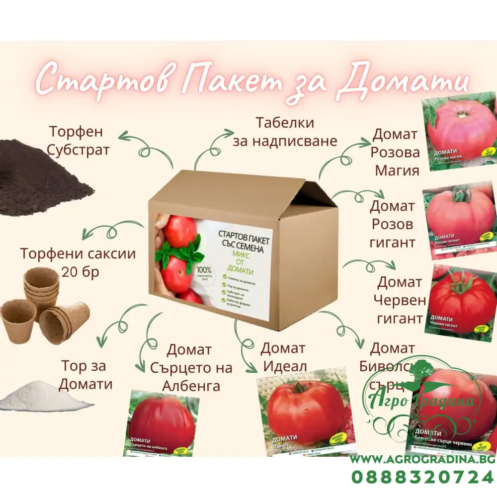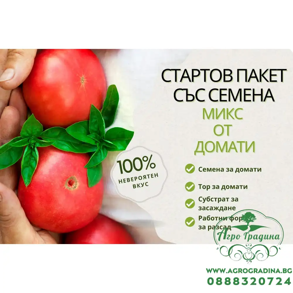 Търсиш сигурен старт за силен разсад и вкусни домати? Този комплект съчетава всичко необходимо – семена на изпитани сортове, качествен субстрат, биоразградими саксийки и водоразтворим тор с микроелементи за равномерен растеж. Подходящ за начинаещи и напреднали – за двор, балкон или оранжерия.